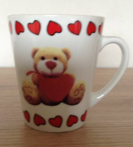 Keramik-Tasse - Becher - Teddy mit großem und kleinen Herzen - Details