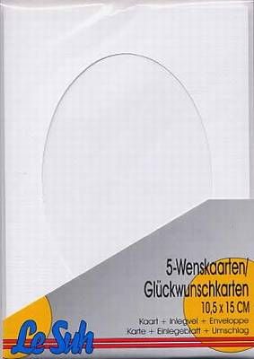 5 Karten mit Umschlag - ovaler Ausschnitt - weiß