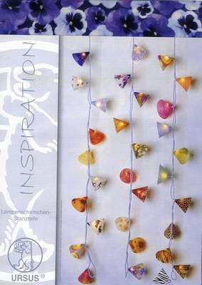 5 Blatt Transparentpapier 115 d/qm Din A4 mit 10 vorgestanzten Lampenschirmchen in einem Motiv zum Dekorieren von Lichterketten. Motiv siehe Link.