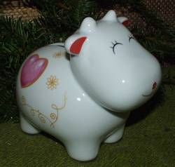 Spar Kuh aus Keramik mit rosa Herzen und Goldverzierung